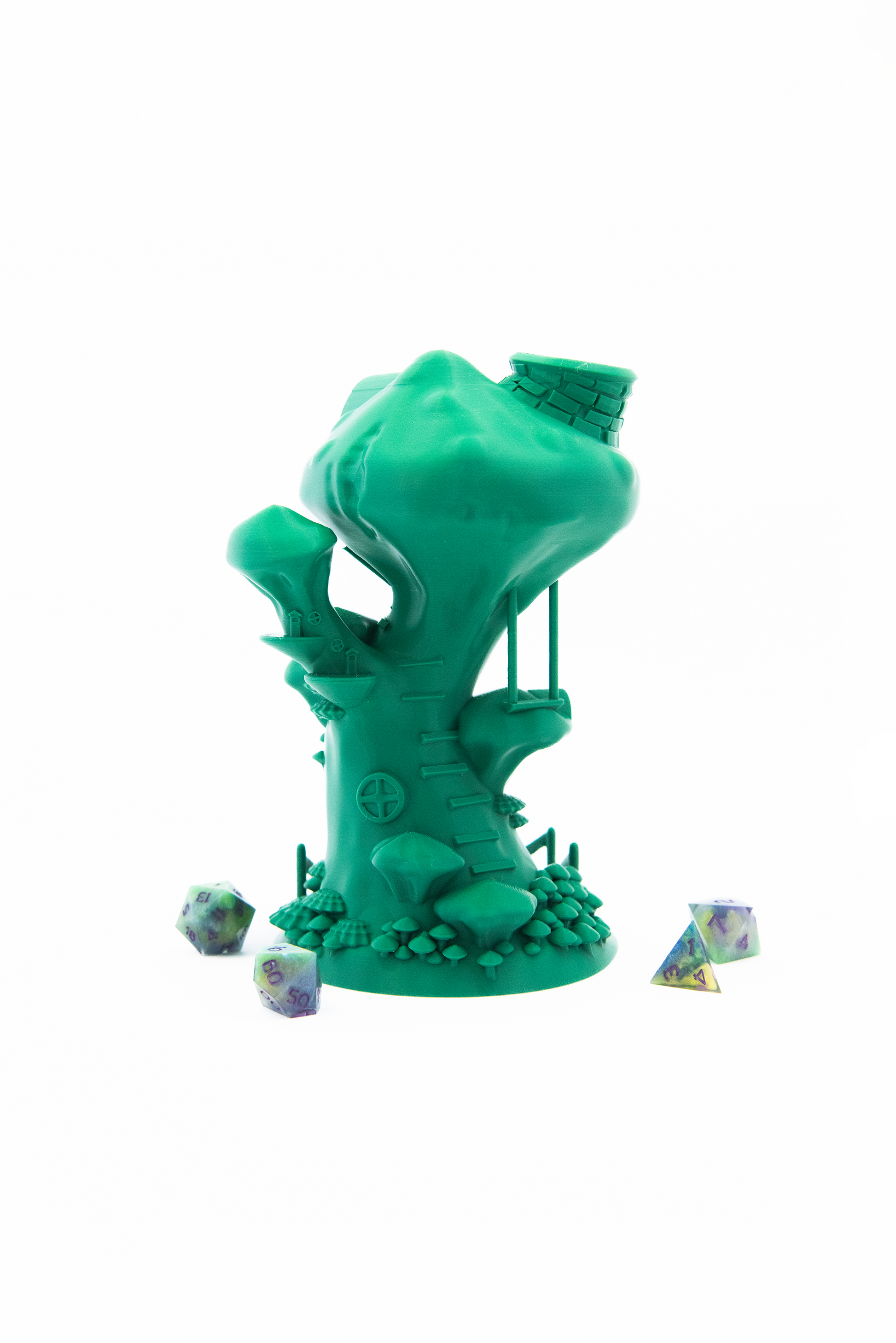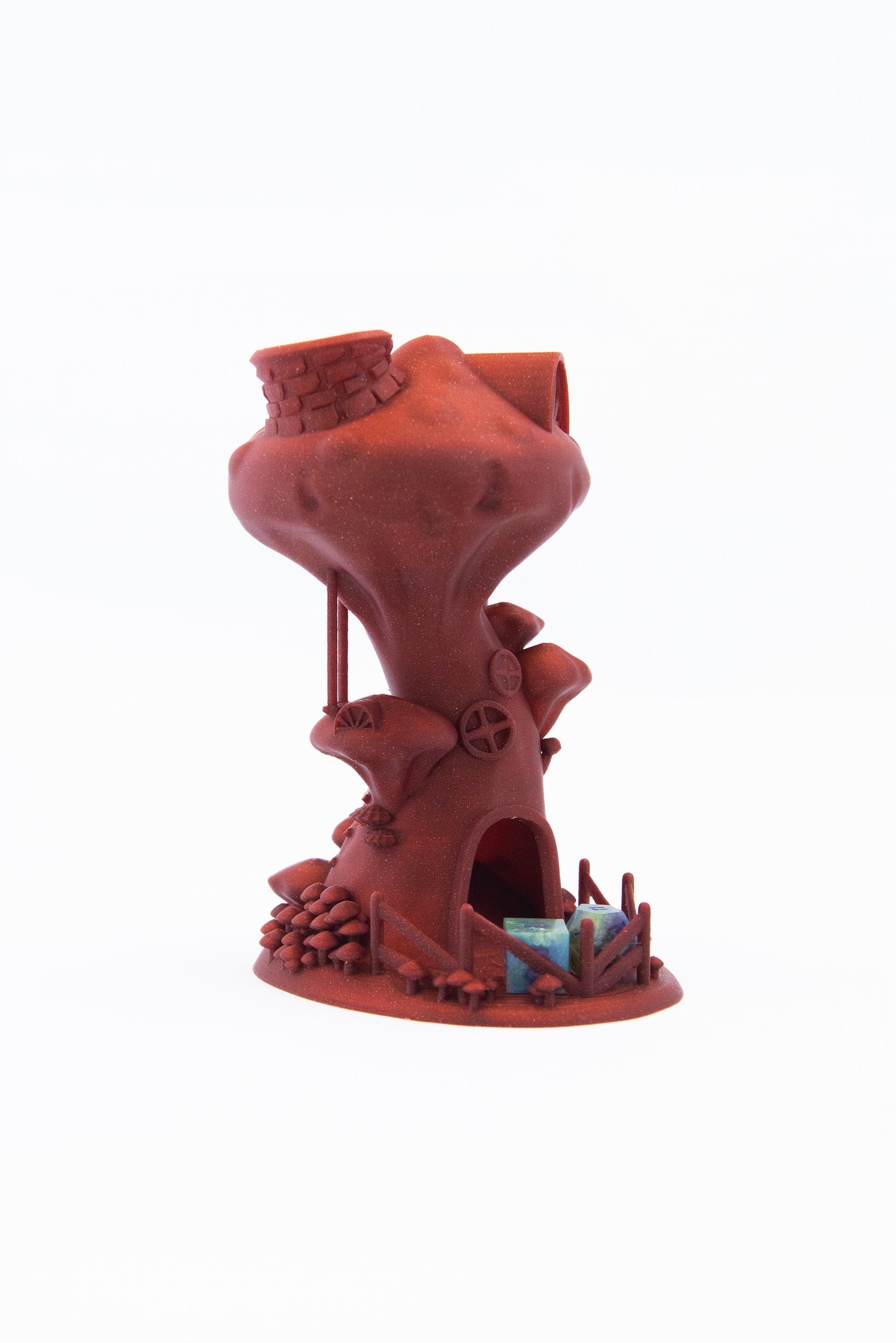 Whether you're playing in an enchanted forest, a toxic cave, or a cheerful gnome village – this mushroom-shaped dice tower fits perfectly into any fantasy session. No more hassle with dice rolling off the table – the internal ramp ensures fair and clearly visible rolls.
