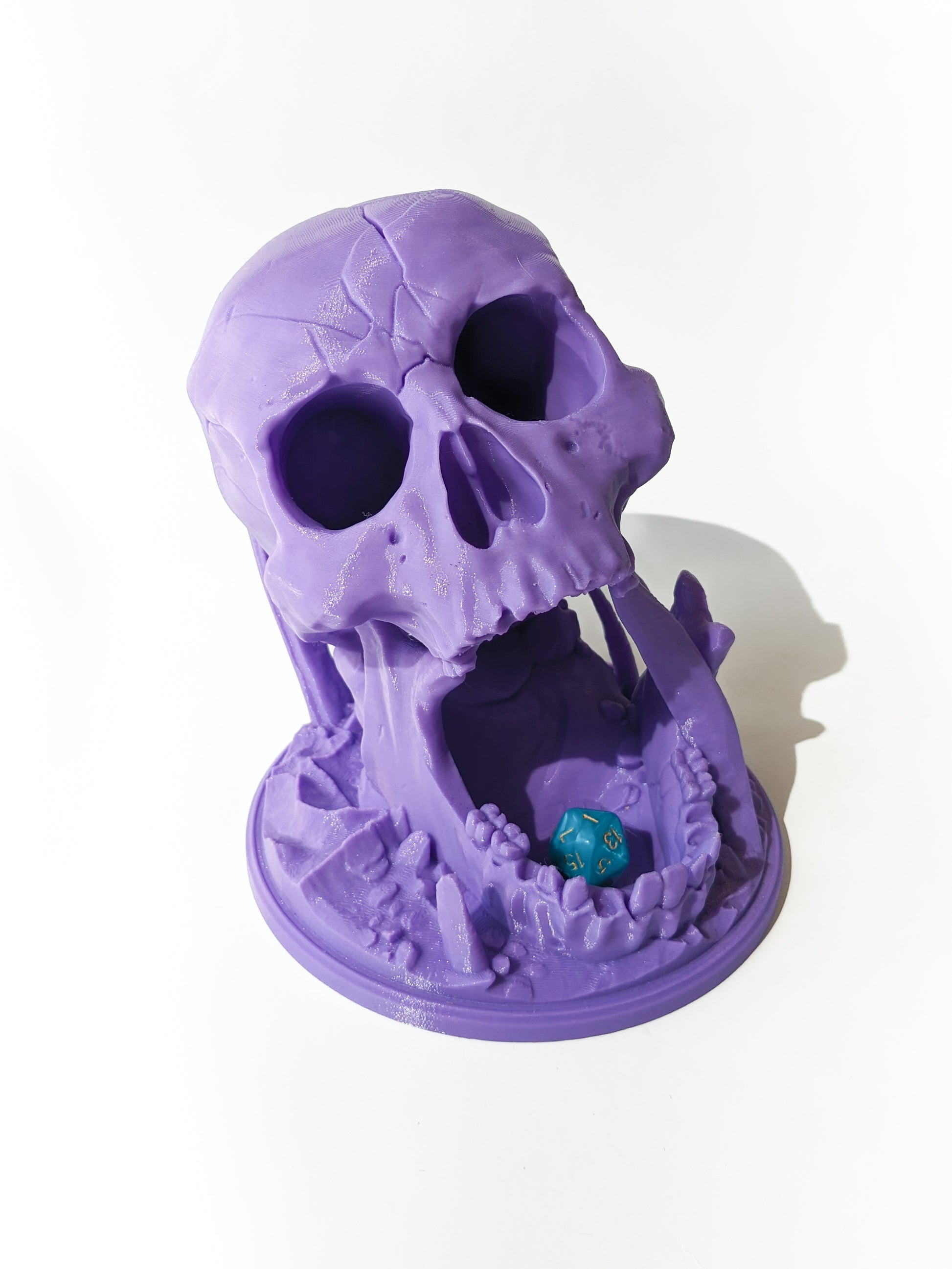 This skull-shaped dice tower adds dramatic flair to every game. 3D printed with recycled PLA and compatible with all standard dice, it’s both eco-friendly and fearsome—perfect for tabletop adventures that demand style and function.