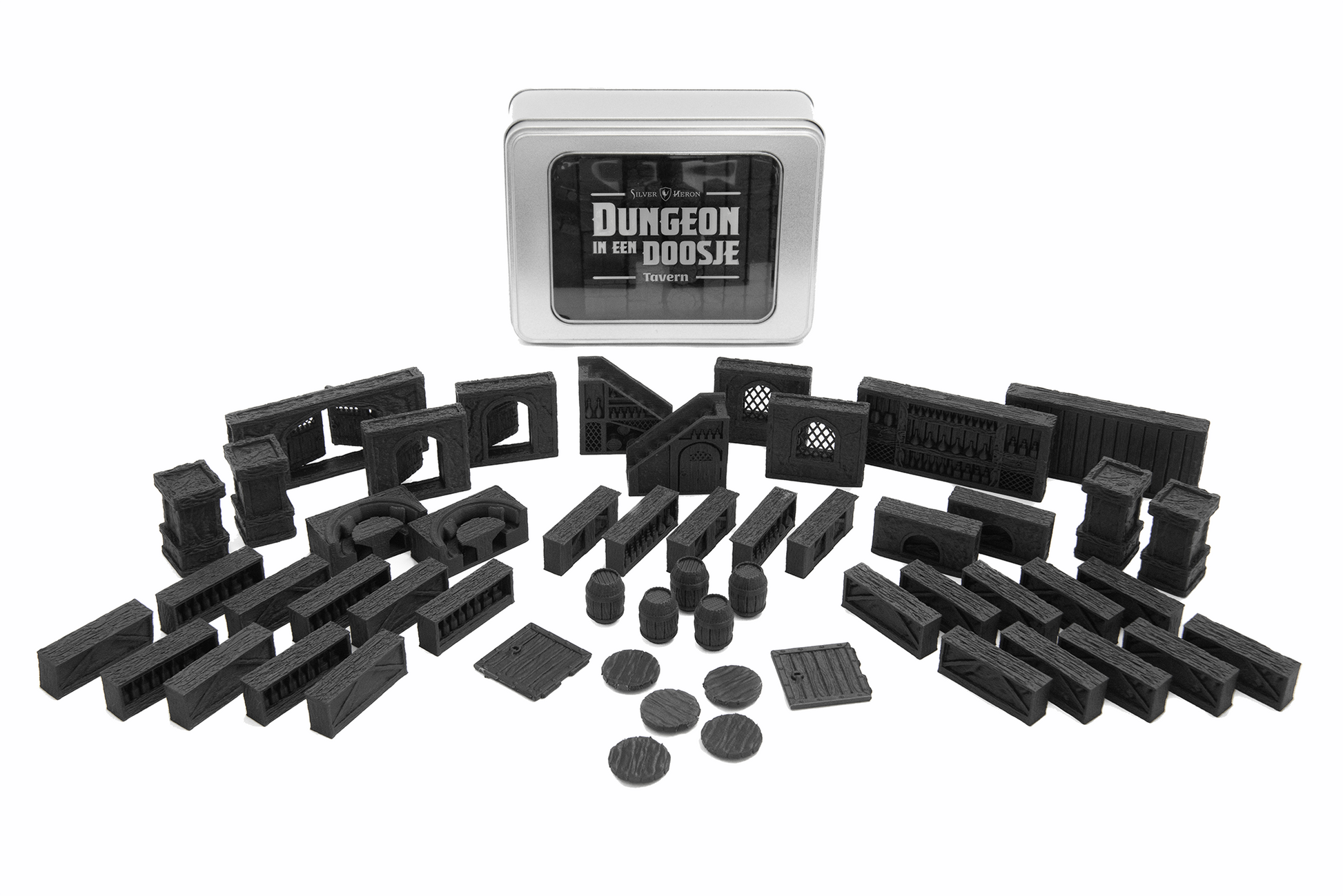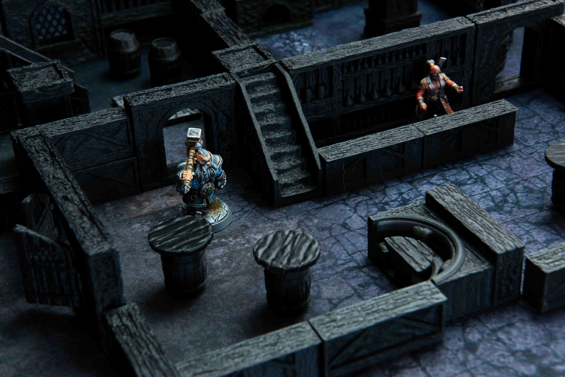 This Tavern-themed set includes a full set of 3D printed terrain, made from recycled filament. From cosy hearths to multifunctional barrel tables and bottle-filled walls, bring your roleplaying sessions to life—paint it up or play straight out of the box. Fully compatible with Dungeons & Dragons, Pathfinder, and more.
