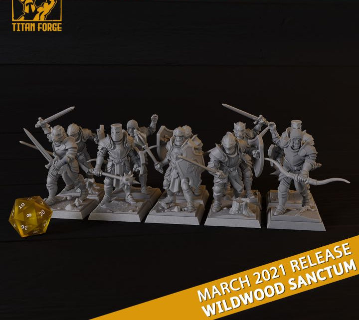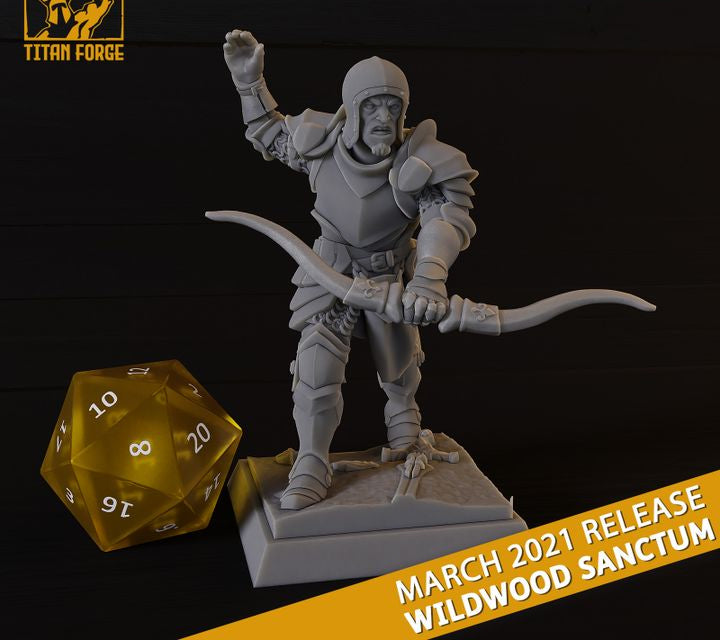 10 premium 3D-printed miniatures licensed from Titan Forge, made to order by Silver Heron Studios. This set will be printed in filament.
